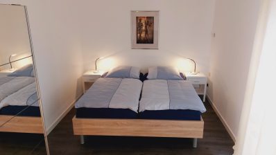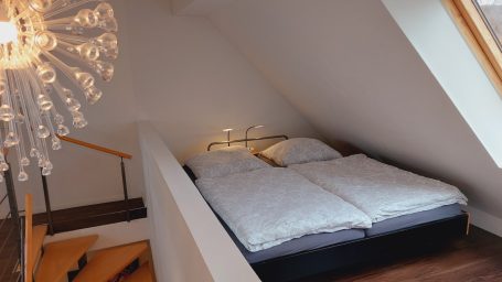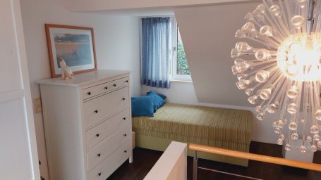 In den oberen zwei Stockwerken befinden sich 2 Schlafzimmer. Diese sind ausgestattet mit jeweils einem Doppelbett und einer Schlafcouch. Vom Schlafzimmer im 1. Geschoss erreichen sie den Balkon.