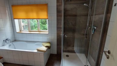 Für unsere Gäste stehen ein Bad mit Wanne, Dusche und WC, sowie ein zweites Bad mit Waschmaschine und WC zur Verfügung.